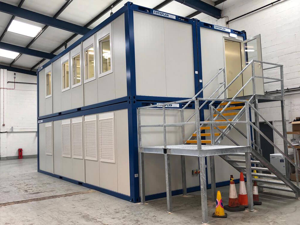 Cotaplan successfully delivered a 4-bay, double-storey modular office building for Serco, one of the UK’s leading public service providers. The structure was installed inside as a modular warehouse building in London and completed in just two weeks, including a staircase and full interior setup. With a fast and efficient installation that took less than half a day, the modular build allowed follow-on trades to get to work without delay.
